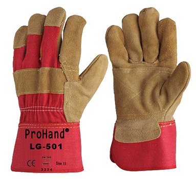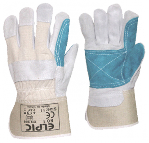 Ağır işler için uygun, avuç içi takviyeli 1. sınıf yarma deri iş eldiveni.